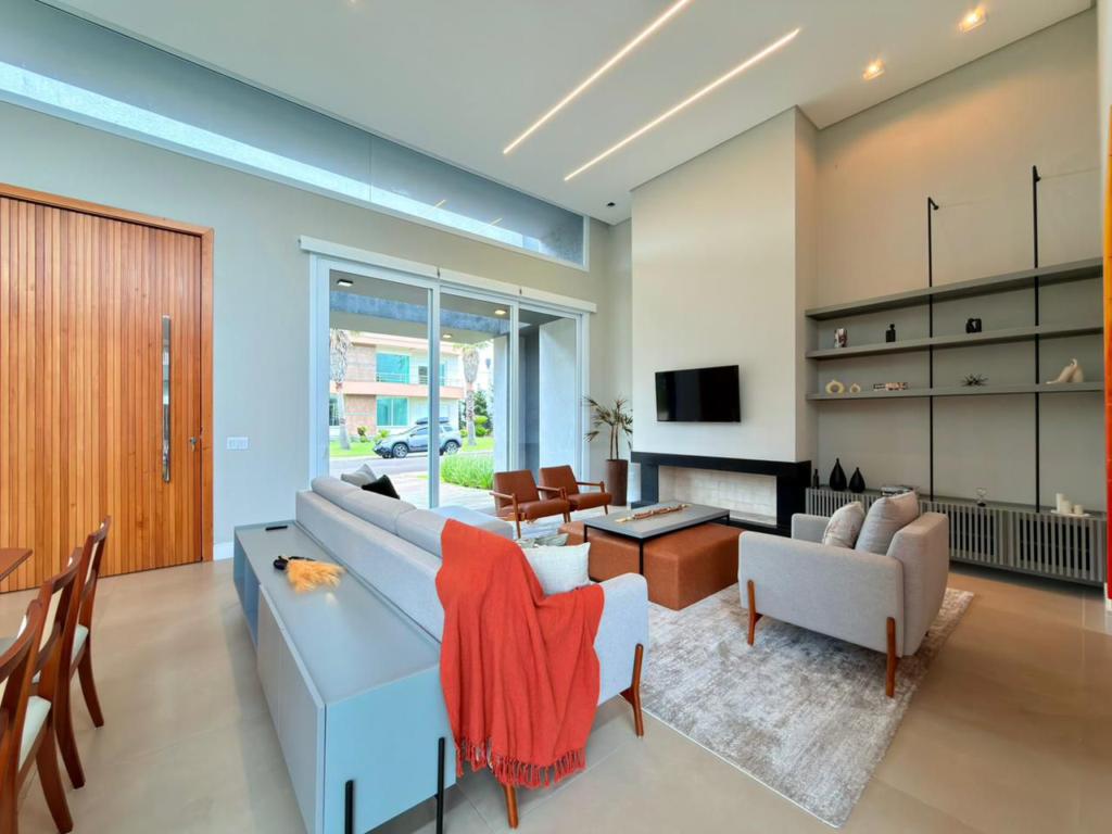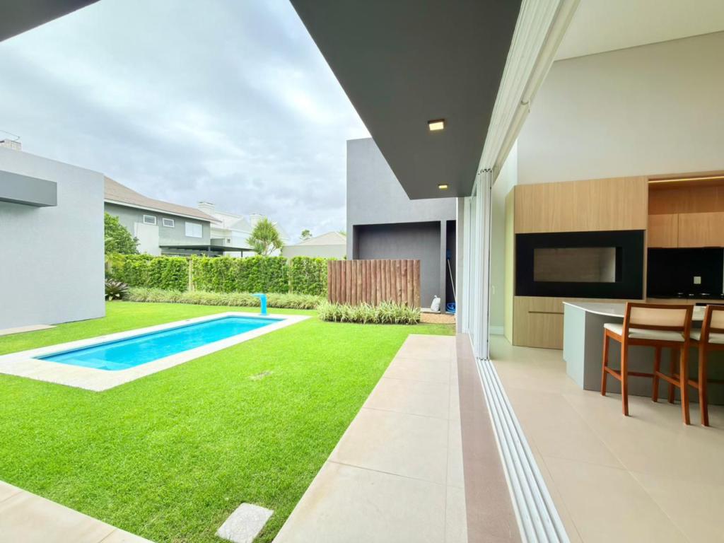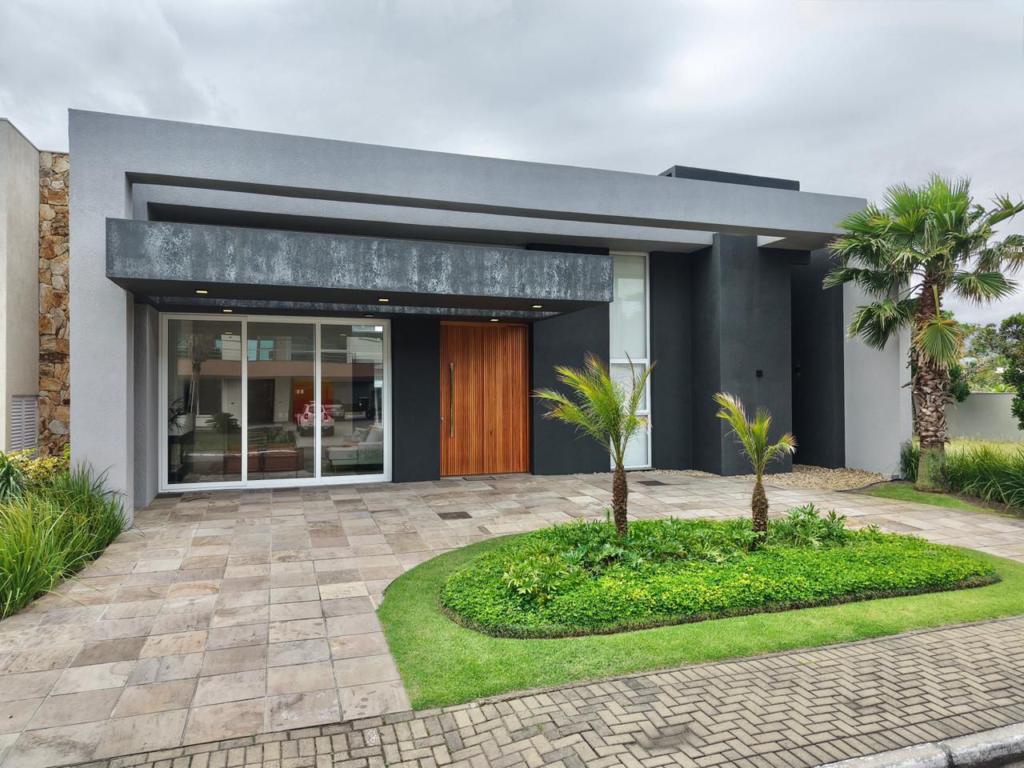 Casa proximo a lagoa, arquitetura moderna, 4 suítes, sala de estar e jantar com lareira, cozinha, área de serviço, abrigo para 2 carros, esquadrias externas em PVC, Piso 1,20 x 1,20, piscina, jardim completo com irrigação.