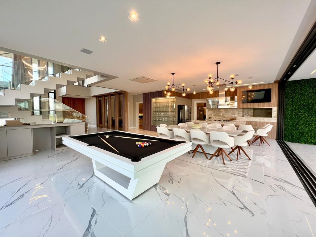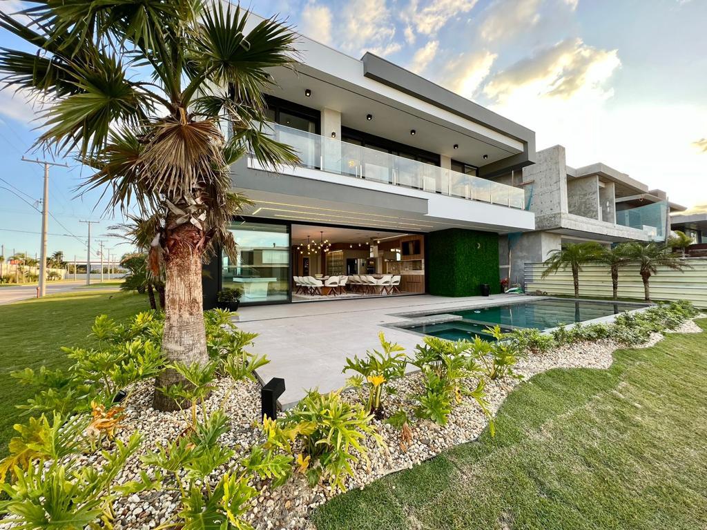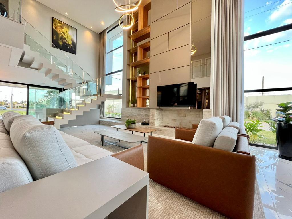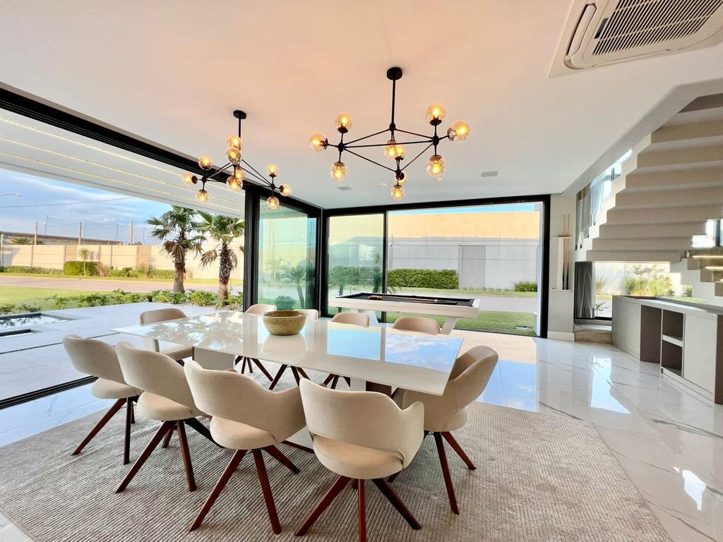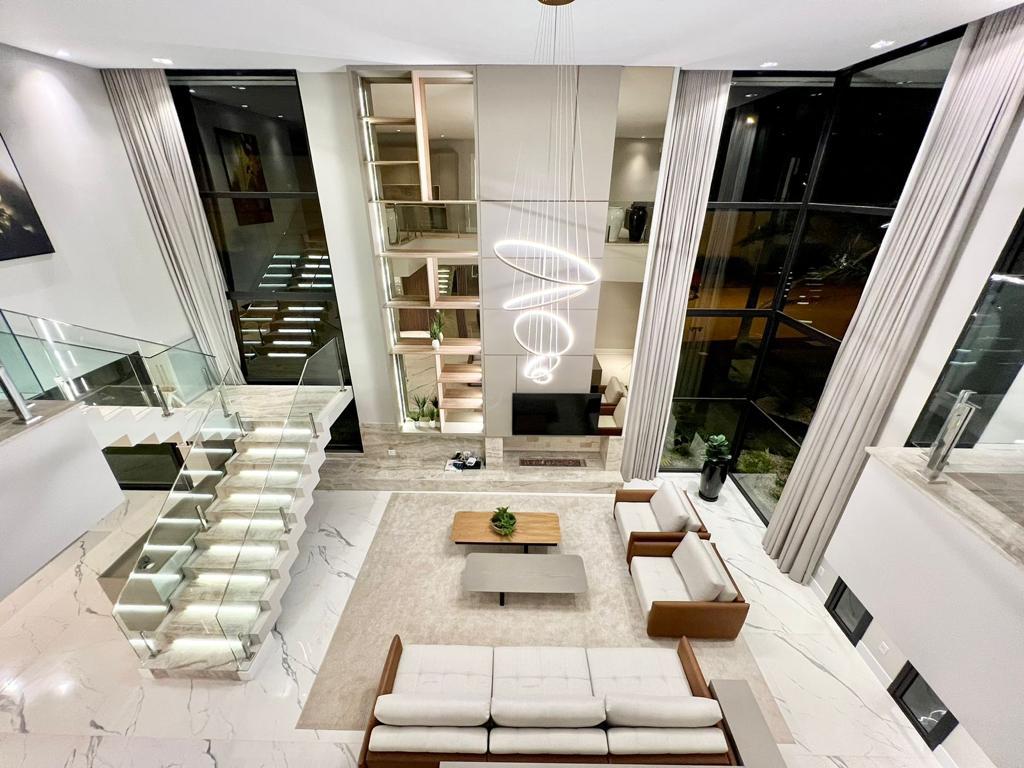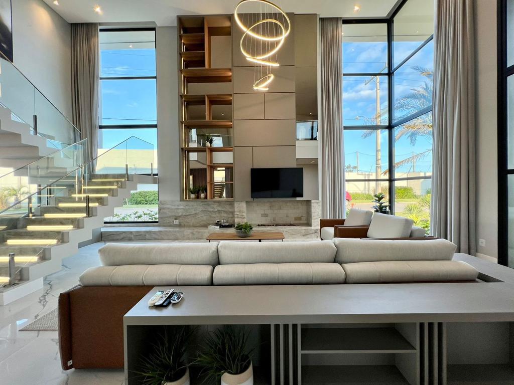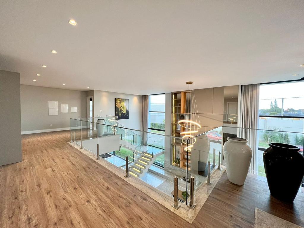 Casa de alto padrão, terreno de esquina, com 5 suítes sendo 1 master e 1 no térreo, living integrado em 3 ambientes com espaço gourmet e cozinha independente, depósito e lavabo. Na parte superior conta com um lindo estar íntimo, e as 4 suítes, piscina em alvenaria, banho externo e vaga coberta para 2 carros.