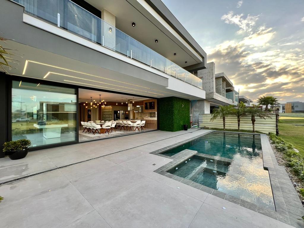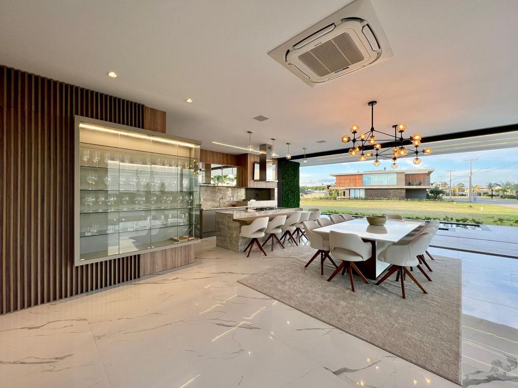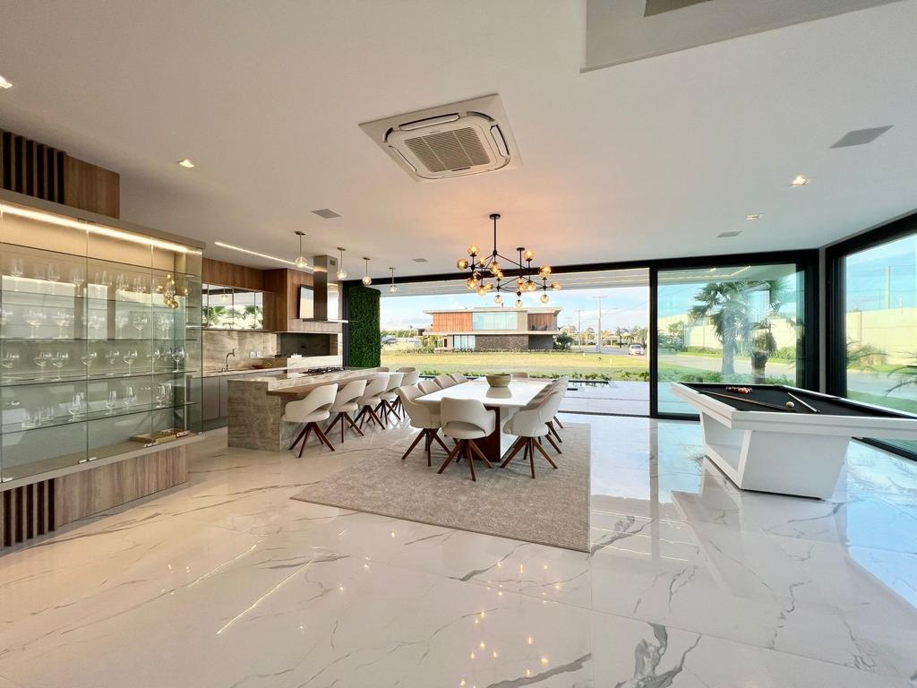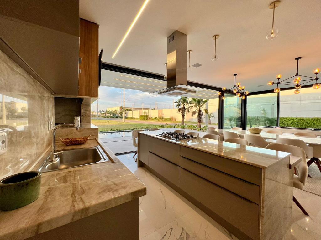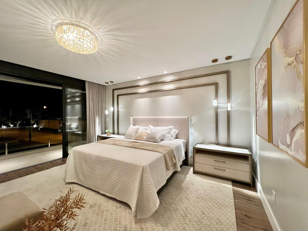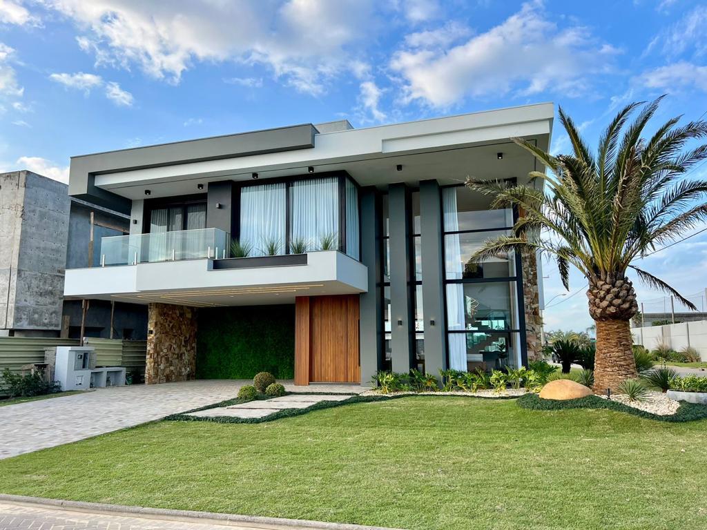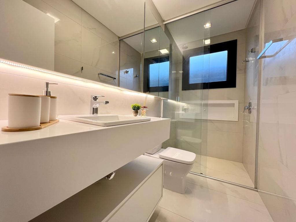 Casa de alto padrão, terreno de esquina, com 5 suítes sendo 1 master e 1 no térreo, living integrado em 3 ambientes com espaço gourmet e cozinha independente, depósito e lavabo. Na parte superior conta com um lindo estar íntimo, e as 4 suítes, piscina em alvenaria, banho externo e vaga coberta para 2 carros.