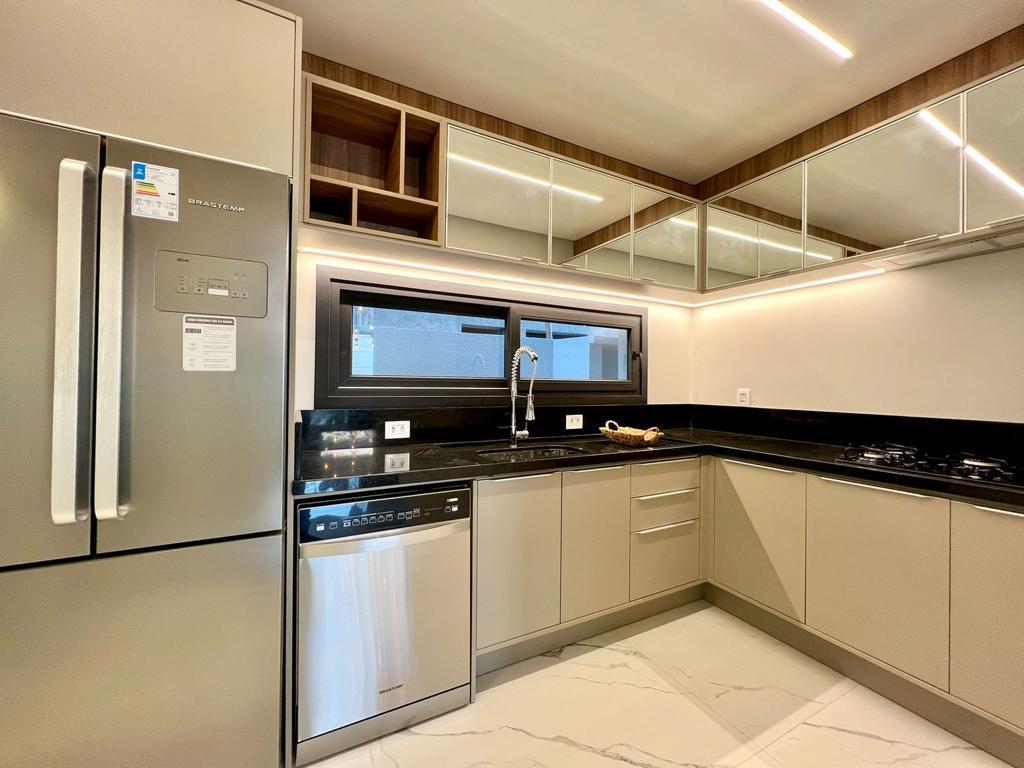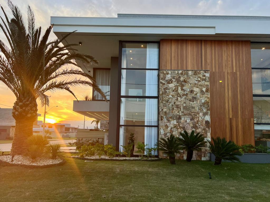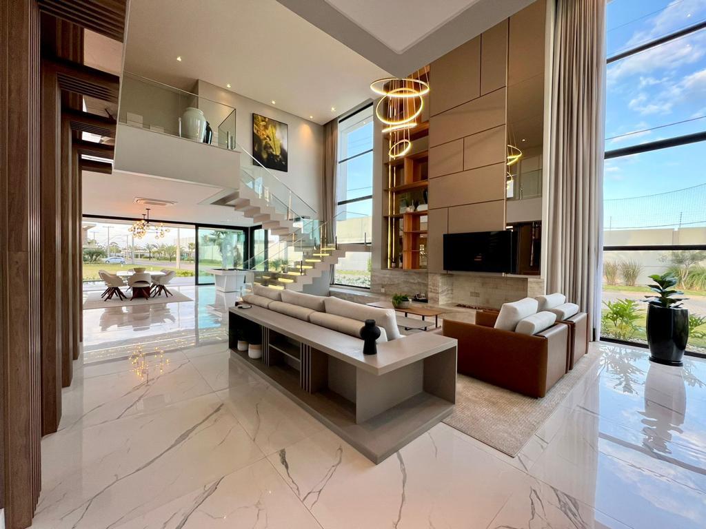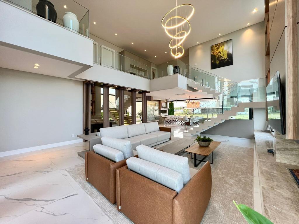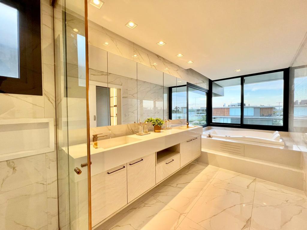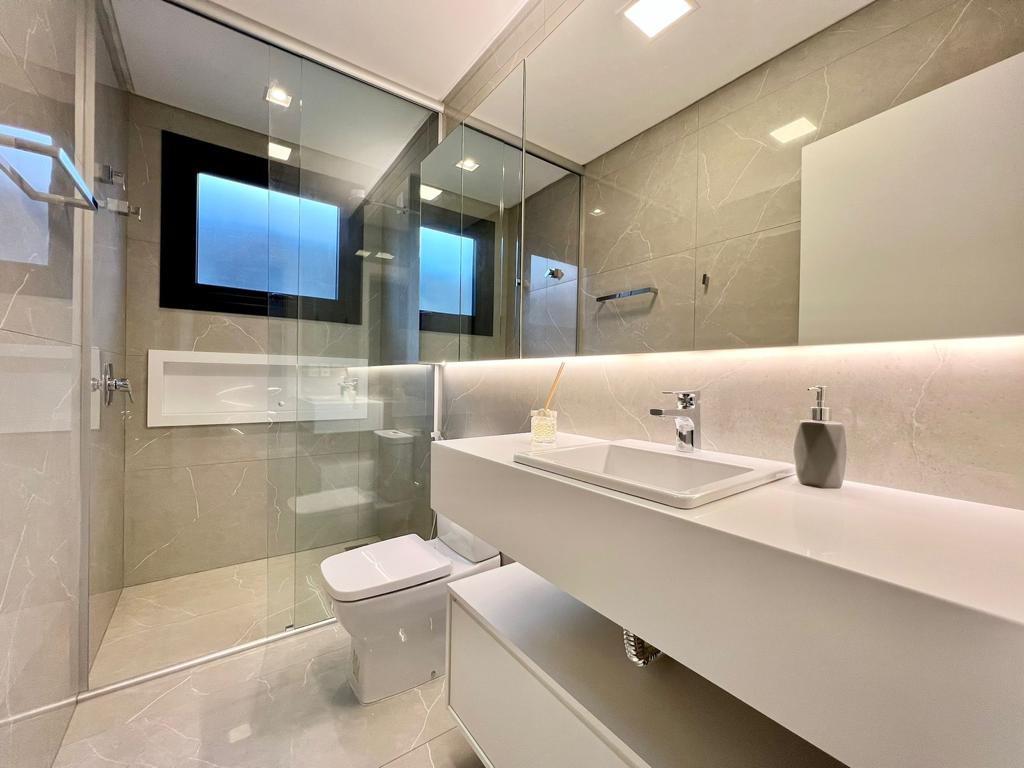Casa de alto padrão, terreno de esquina, com 5 suítes sendo 1 master e 1 no térreo, living integrado em 3 ambientes com espaço gourmet e cozinha independente, depósito e lavabo. Na parte superior conta com um lindo estar íntimo, e as 4 suítes, piscina em alvenaria, banho externo e vaga coberta para 2 carros.