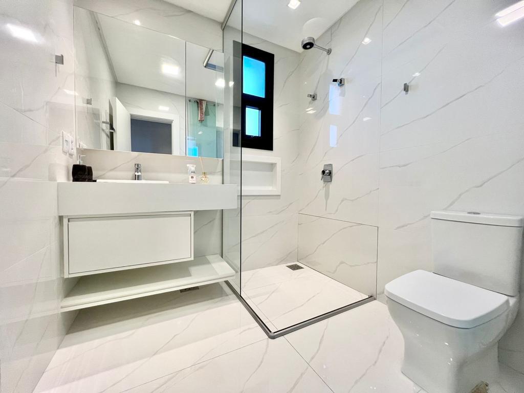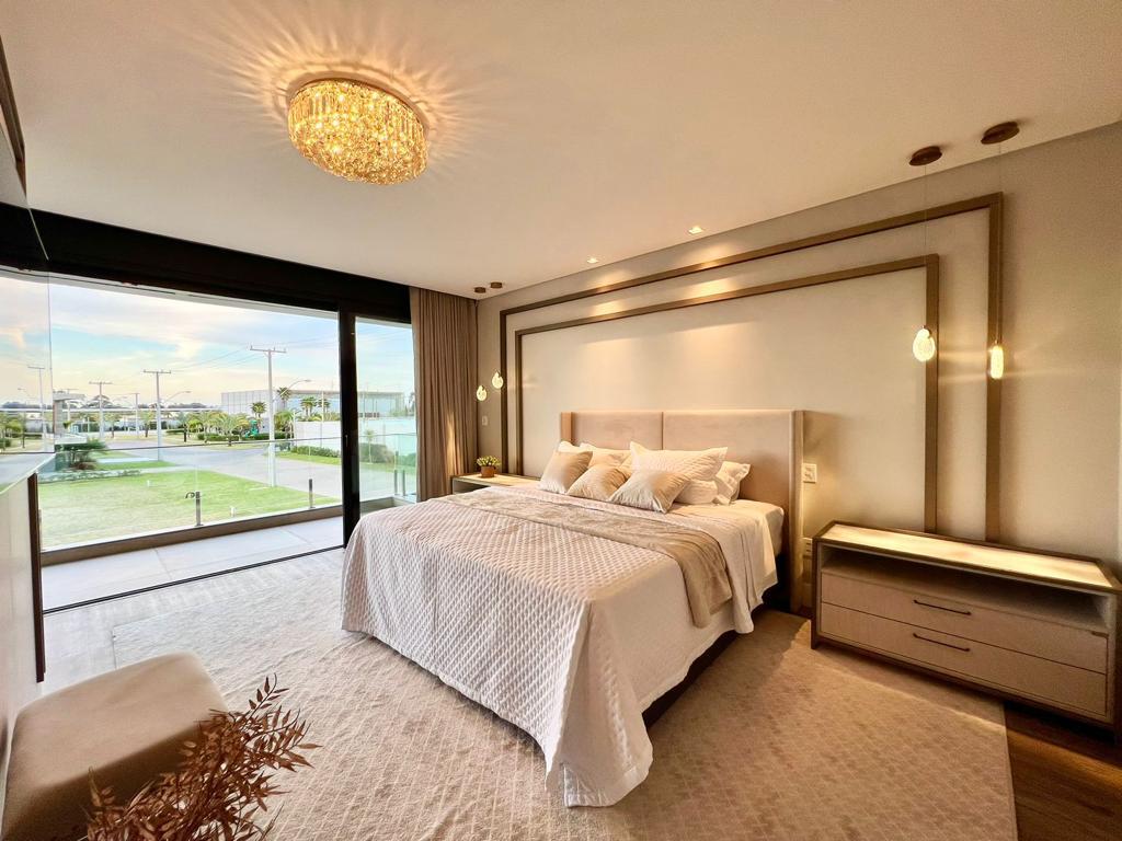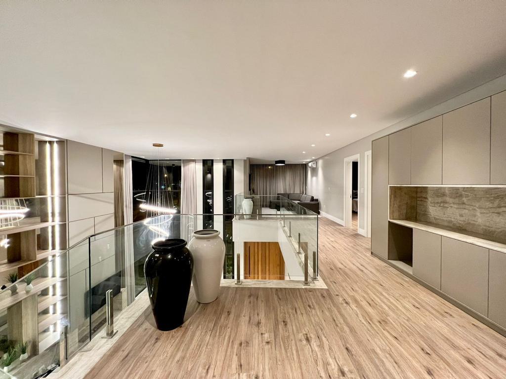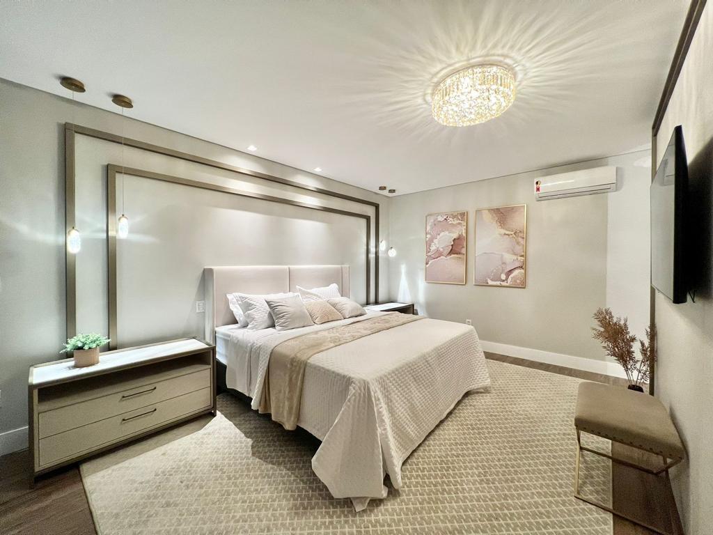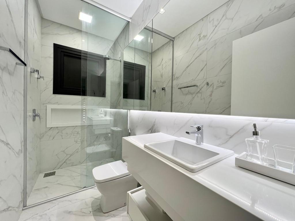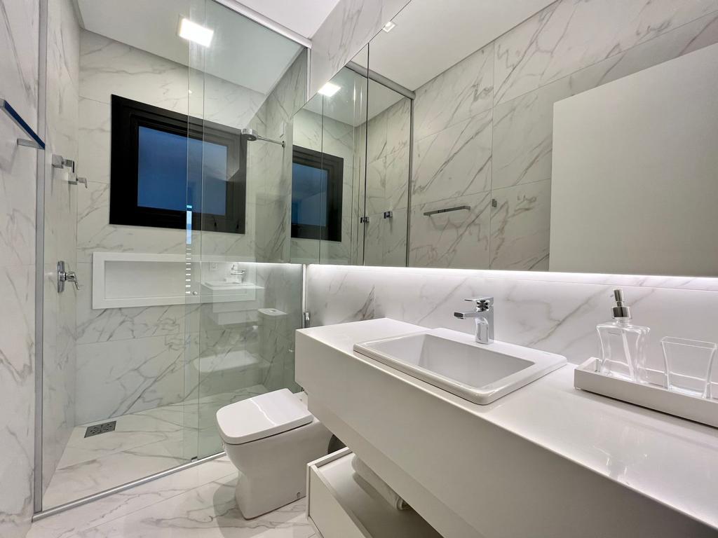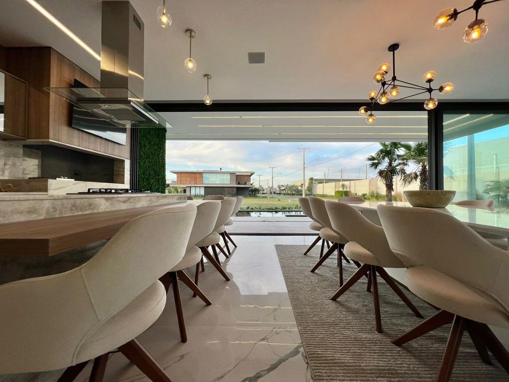 Casa de alto padrão, terreno de esquina, com 5 suítes sendo 1 master e 1 no térreo, living integrado em 3 ambientes com espaço gourmet e cozinha independente, depósito e lavabo. Na parte superior conta com um lindo estar íntimo, e as 4 suítes, piscina em alvenaria, banho externo e vaga coberta para 2 carros.