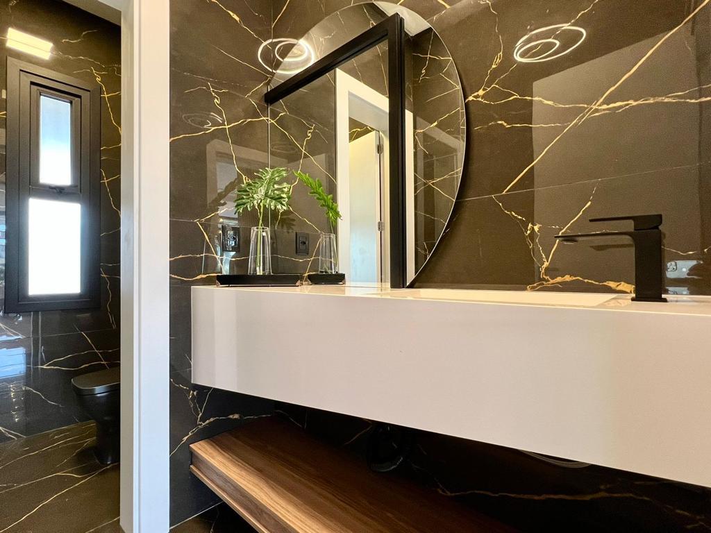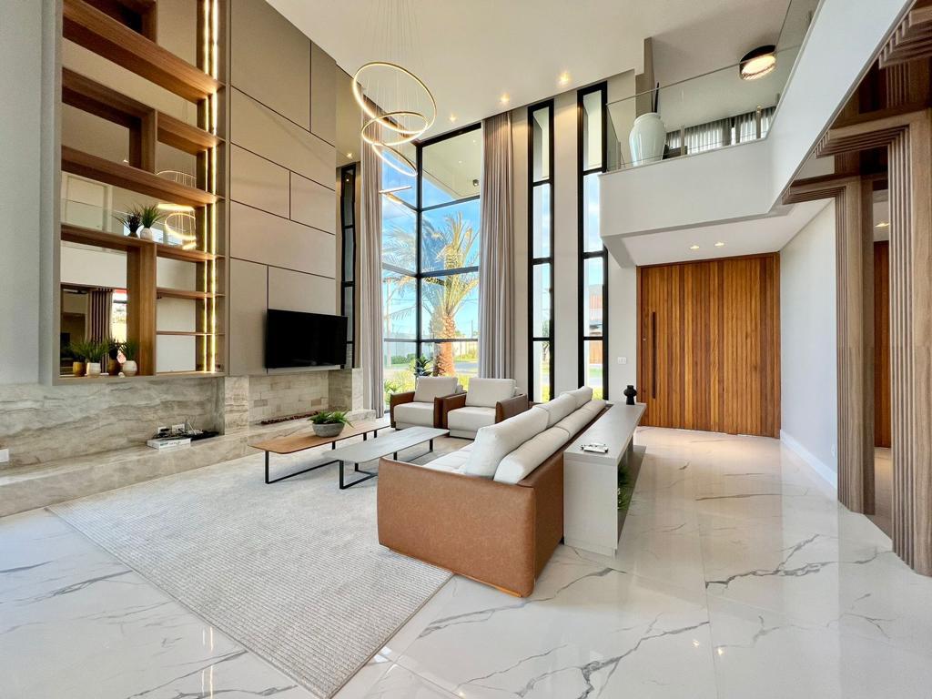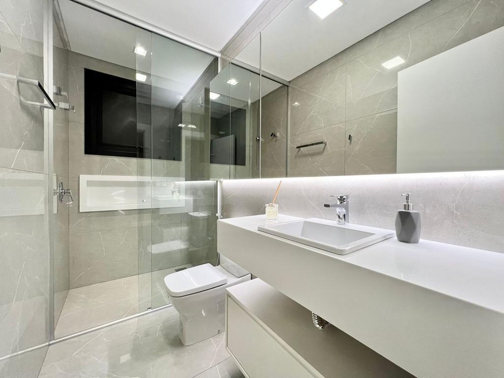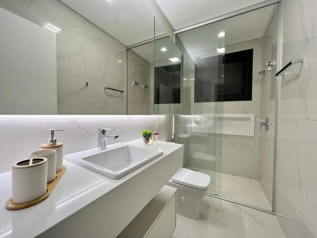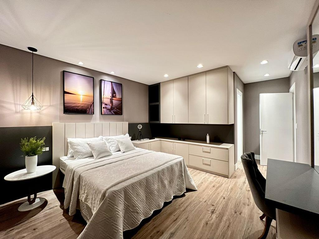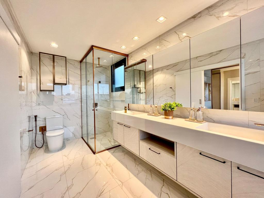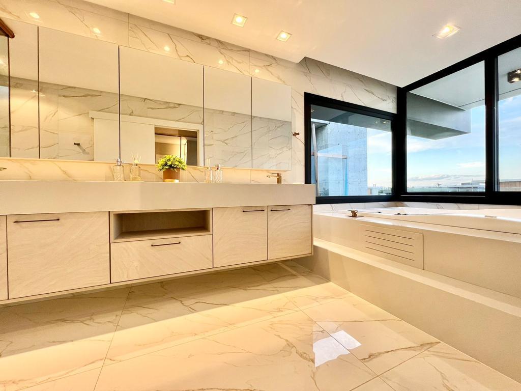 Casa de alto padrão, terreno de esquina, com 5 suítes sendo 1 master e 1 no térreo, living integrado em 3 ambientes com espaço gourmet e cozinha independente, depósito e lavabo. Na parte superior conta com um lindo estar íntimo, e as 4 suítes, piscina em alvenaria, banho externo e vaga coberta para 2 carros.
