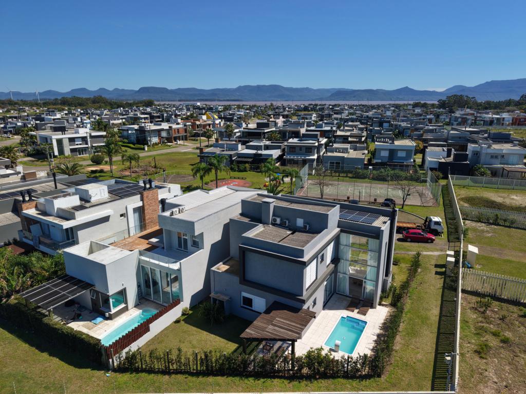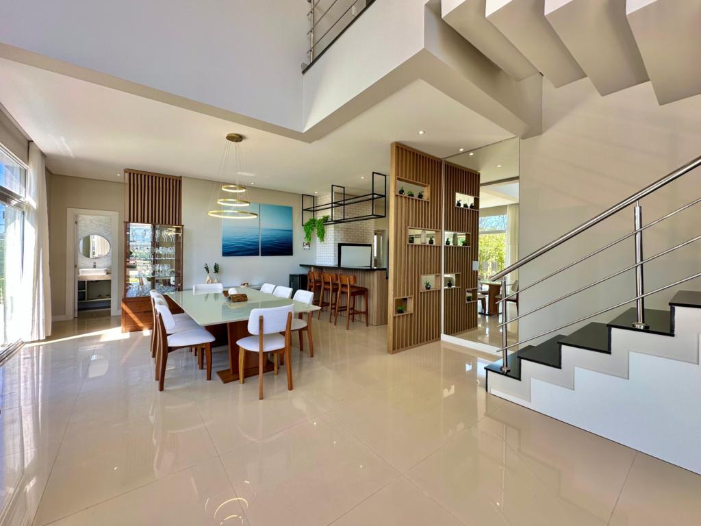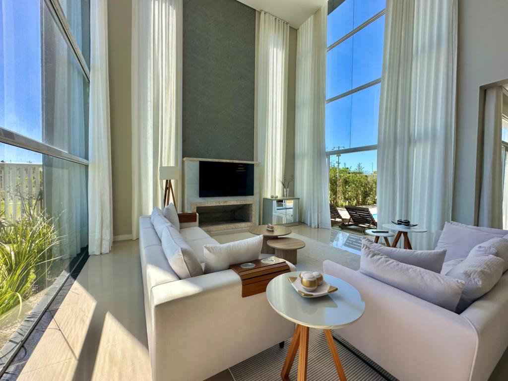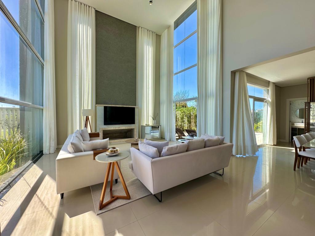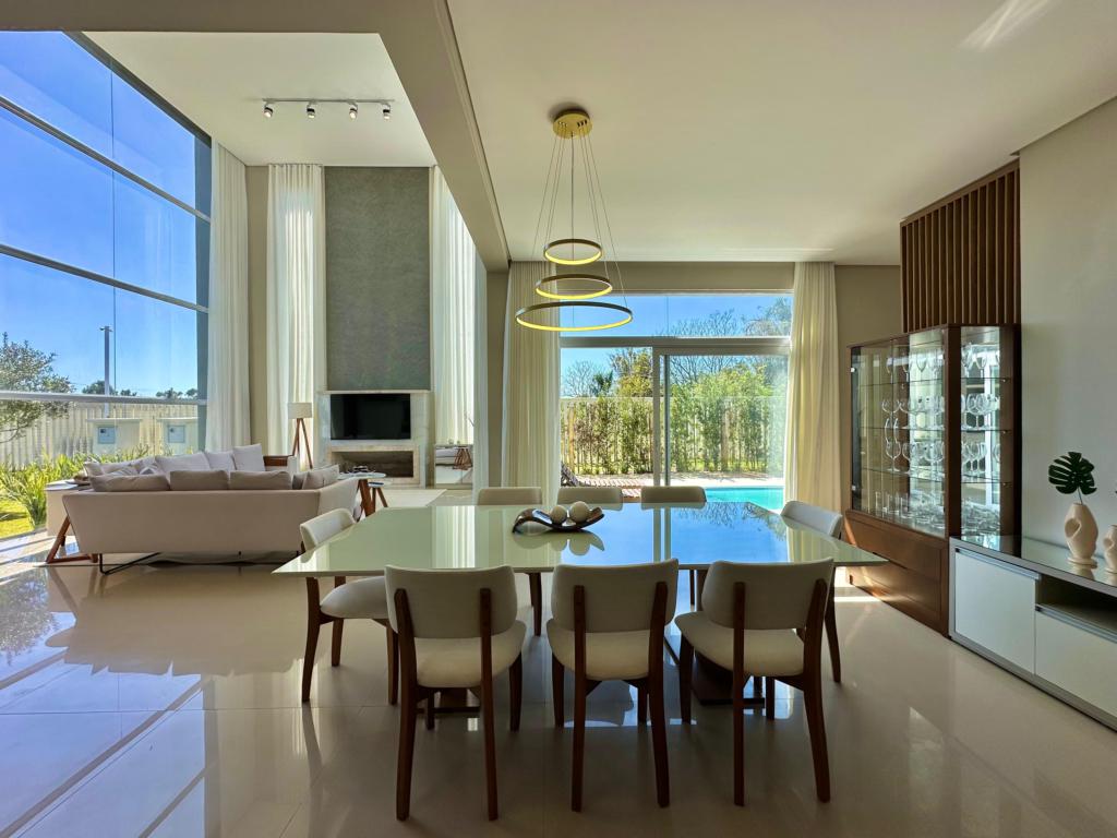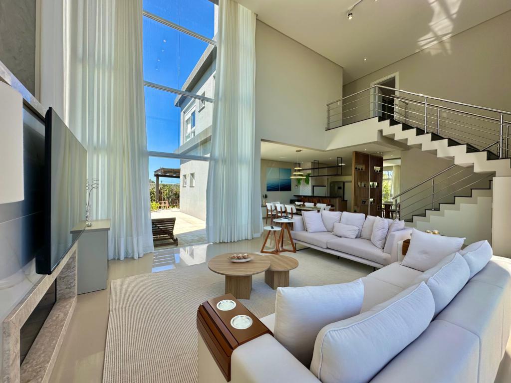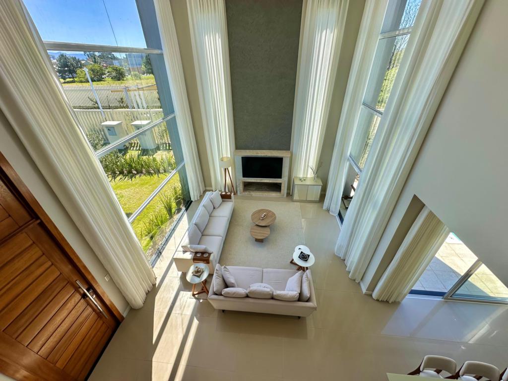 CONDOMÍNIO CAPÃO ILHAS RESORT, 4 suítes sendo uma master com hidro, mobiliado e decorado, pé direito duplo, muita iluminação natural, living e estar integrado, lavabo, cozinha estilo americano, espaço gourmet, amplo living social integrado, linda vista do por do sol, piscina com gourmet, equipada com placa solar.