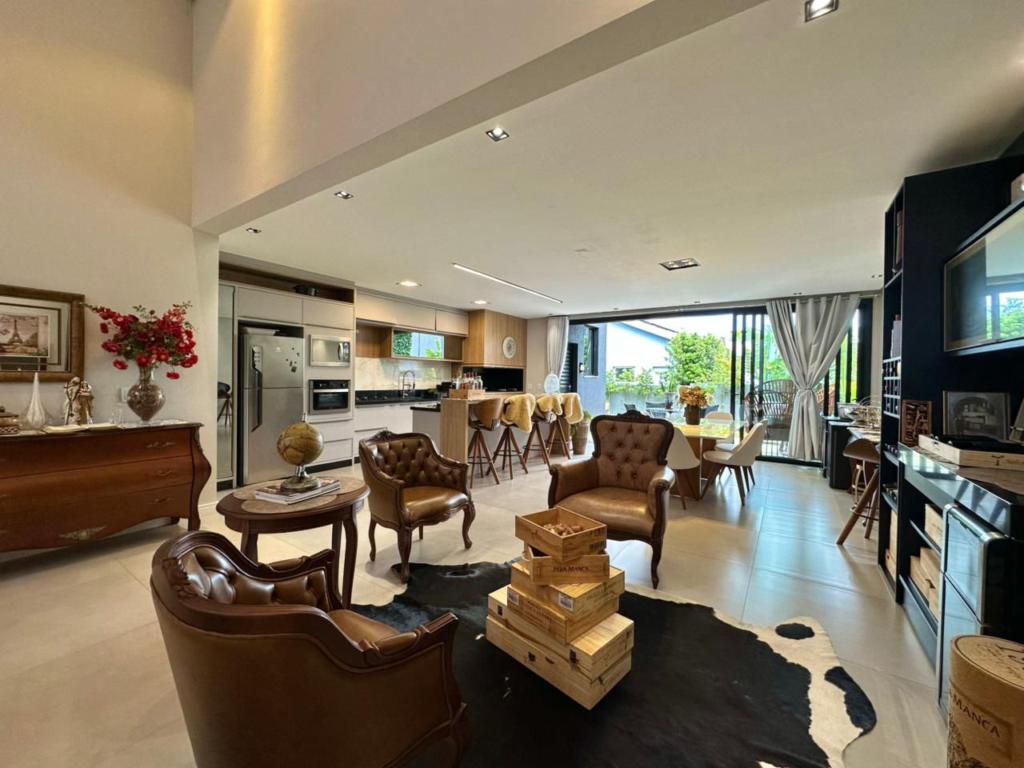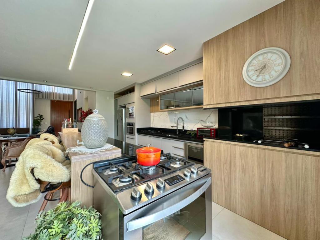 , decorado, living com 3 ambientes, sala de estar, jantar e cozinha completa, lareira, adega , pé direito duplo, alto padrão, abrigo para 2 Carros.