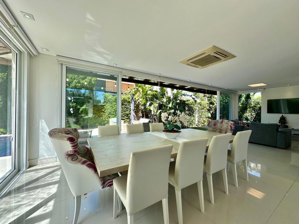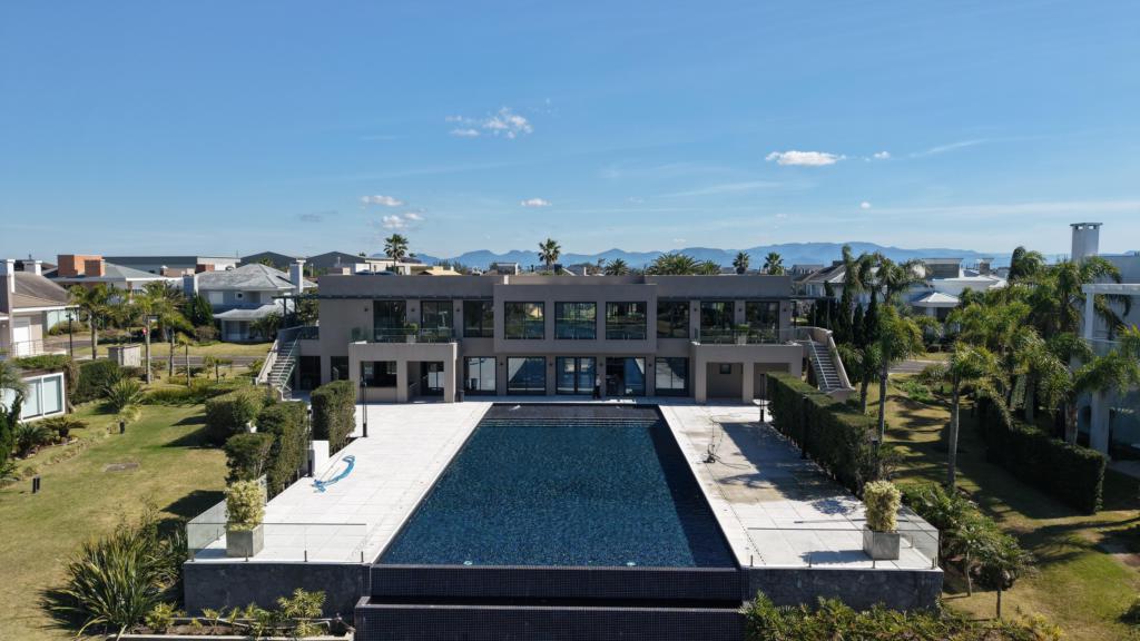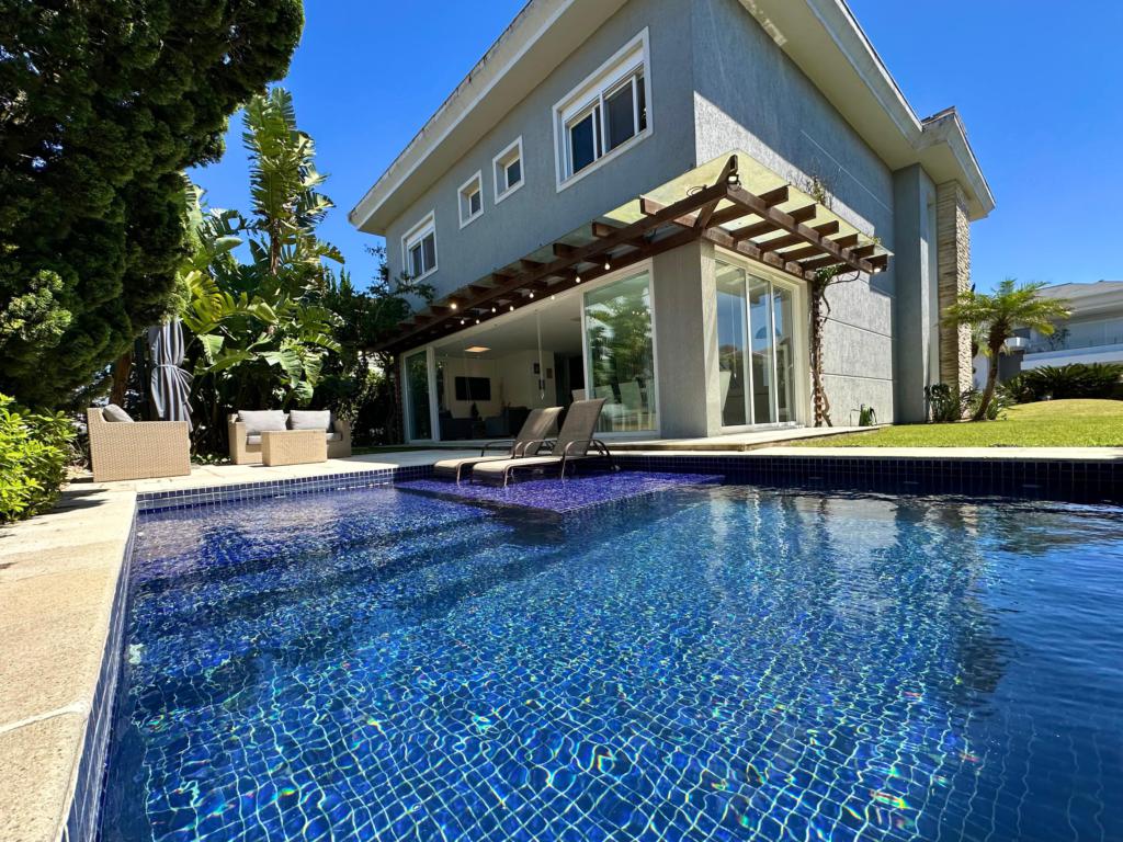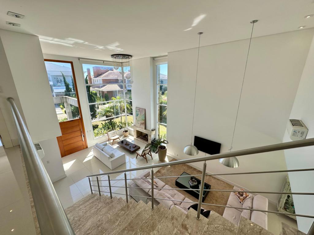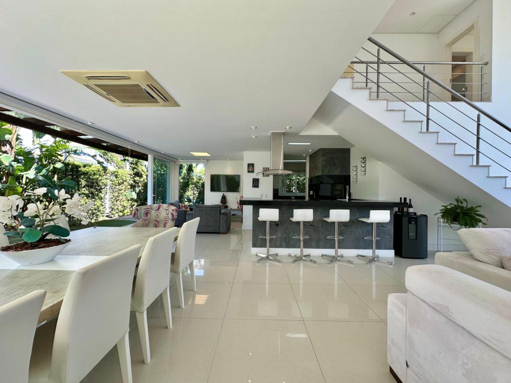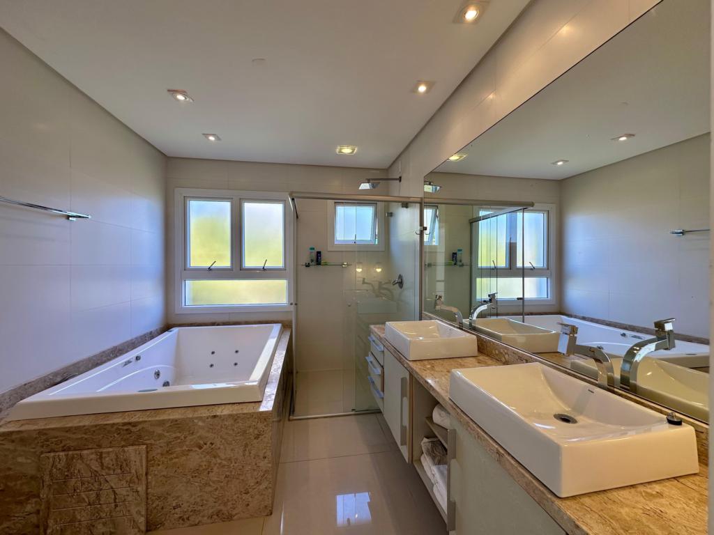 CONDOMINIO LAS DUNAS, 5 suítes, sendo uma térrea e a master com closet e banheira, lavabo, amplo living com 4 ambientes (sala de estar com lareira, jantar, sala de jogos e e sala de TV, cozinha gourmet com churrasqueira, área de serviço, dependência de empregada completa, abrigo para dois carros, piscina em concreto, 300 m2 de área privativa (fora áreas externas como sacadas e abrigo)