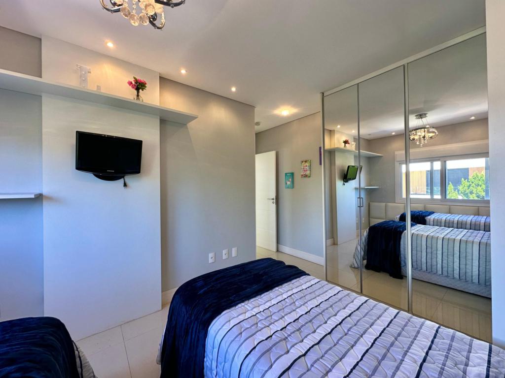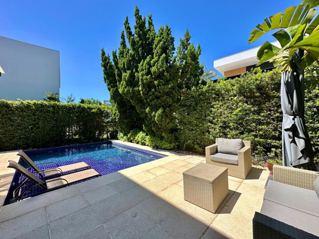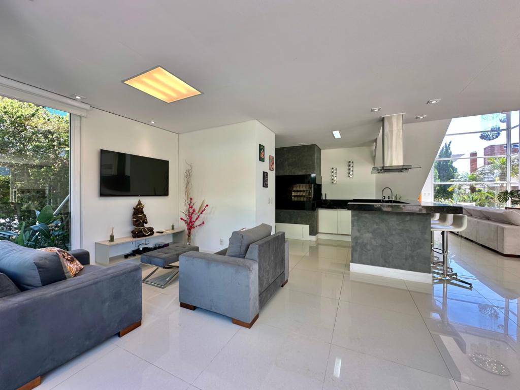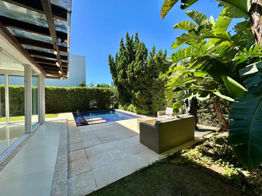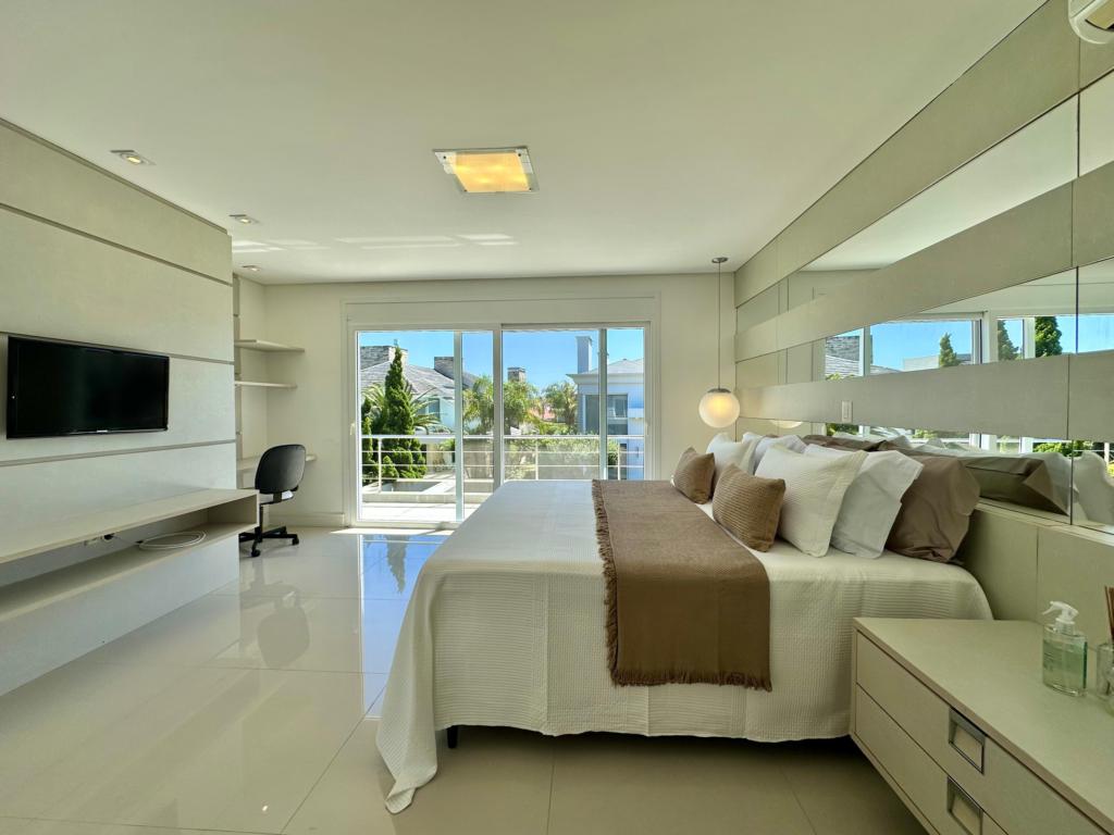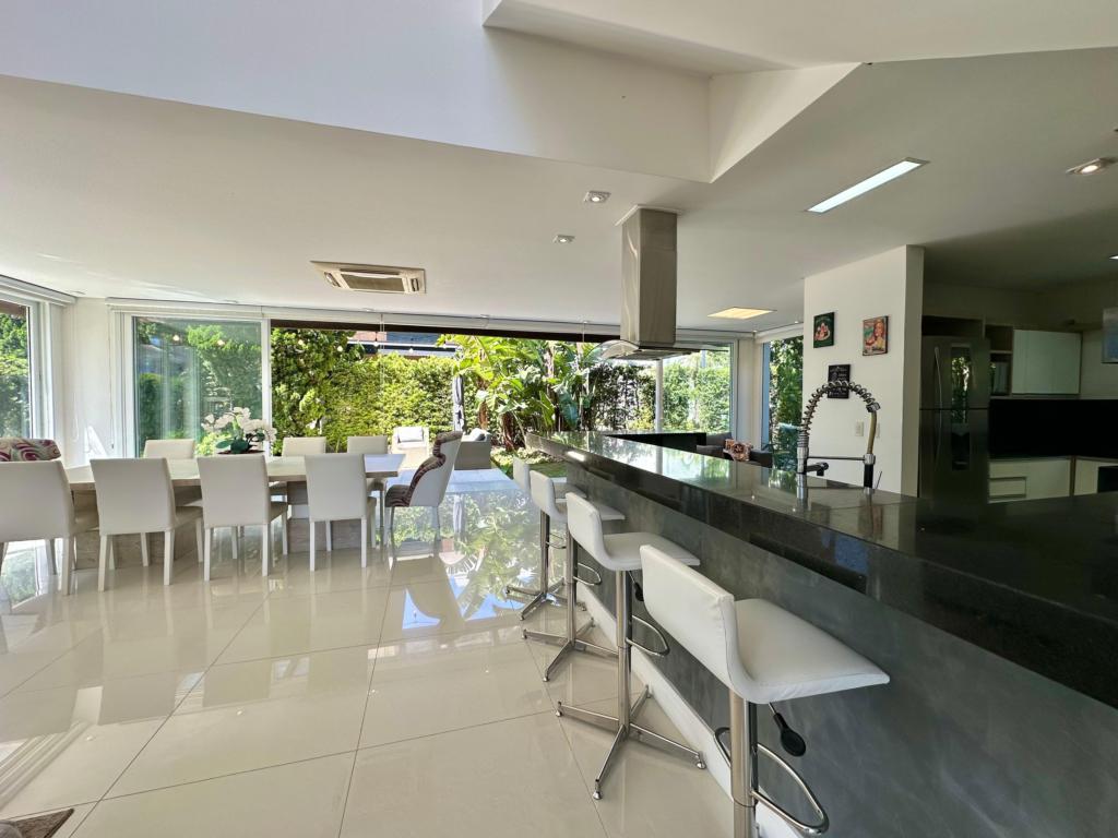 CONDOMINIO LAS DUNAS, 5 suítes, sendo uma térrea e a master com closet e banheira, lavabo, amplo living com 4 ambientes (sala de estar com lareira, jantar, sala de jogos e e sala de TV, cozinha gourmet com churrasqueira, área de serviço, dependência de empregada completa, abrigo para dois carros, piscina em concreto, 300 m2 de área privativa (fora áreas externas como sacadas e abrigo)
