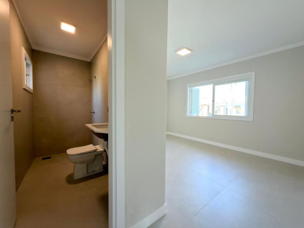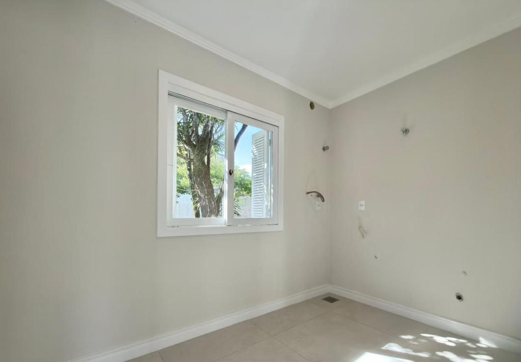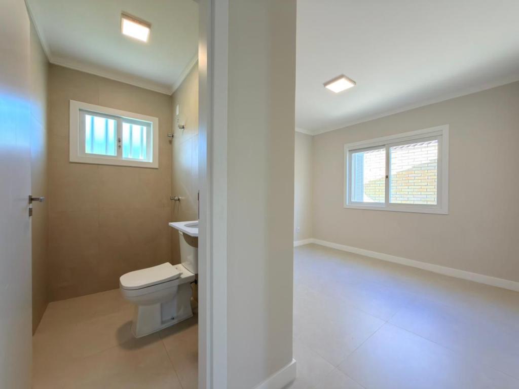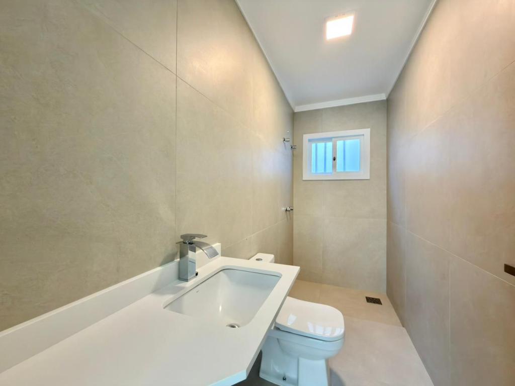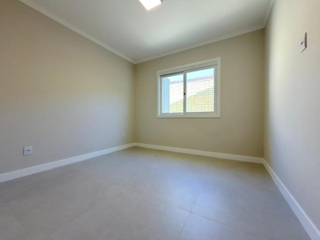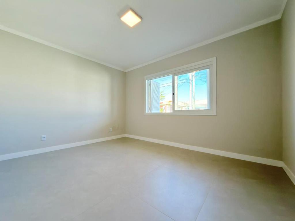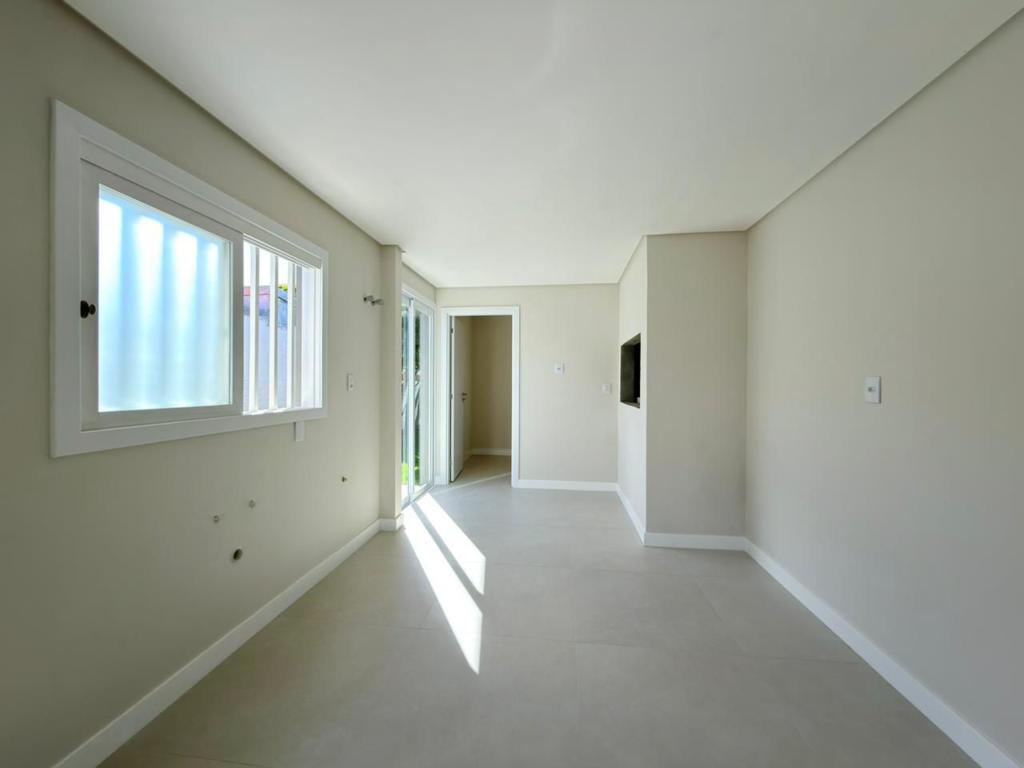 , forro em laje, com iluminação, 3 dormitórios sendo 2 suítes, livin 3 ambientes rebaixado em gesso, lareira a lenha, cozinha americana c/ churrasqueira tubulação para água quente, banheiro social, ampla área de serviço, amplo pátio (12x 32,5), garagem coberta para carro, divisa com Atlântida.