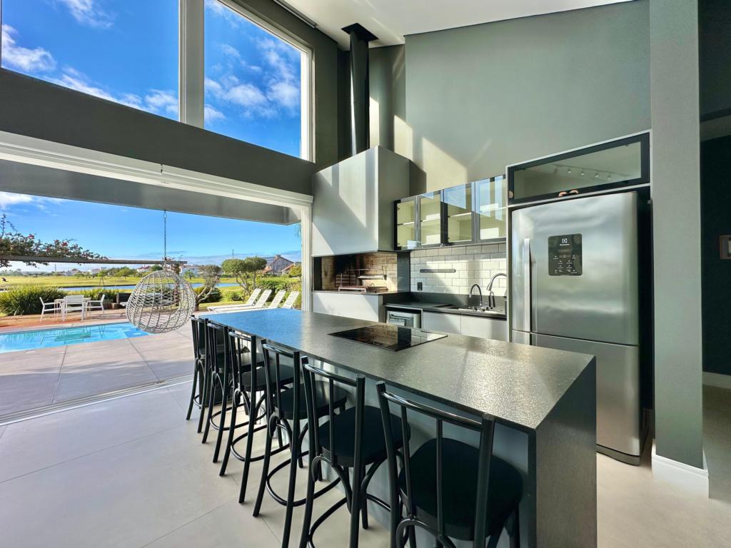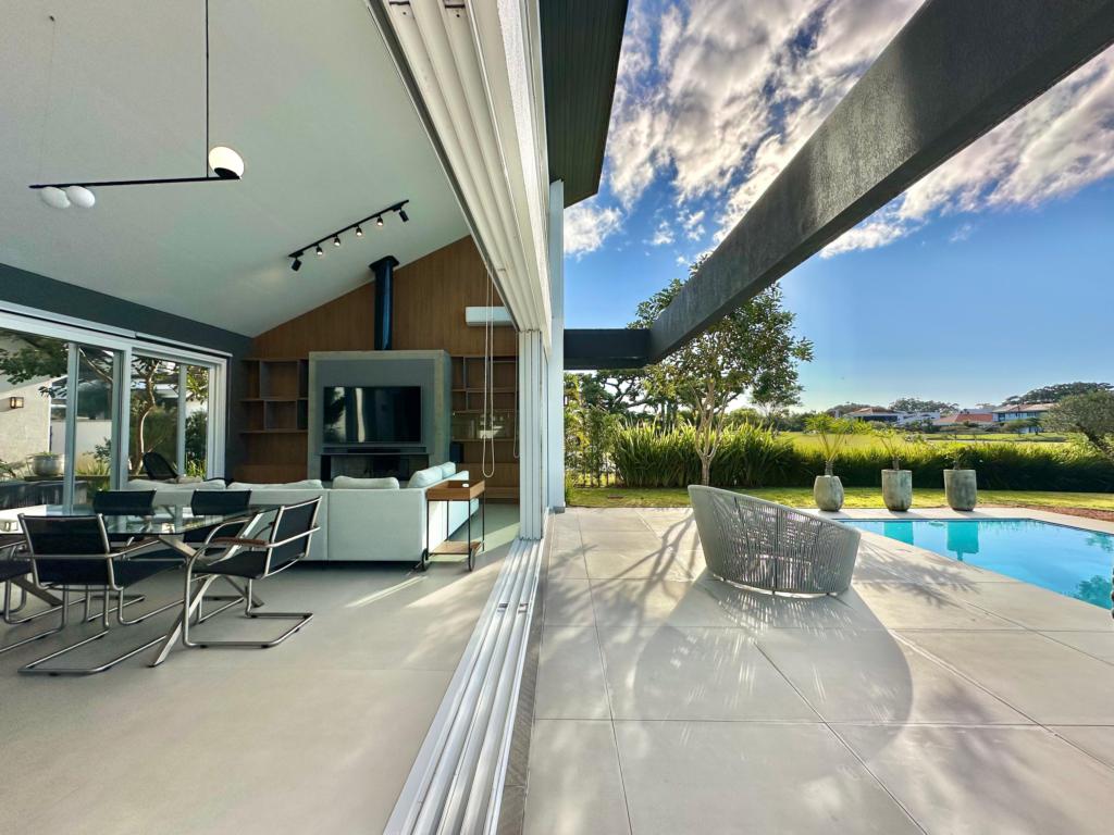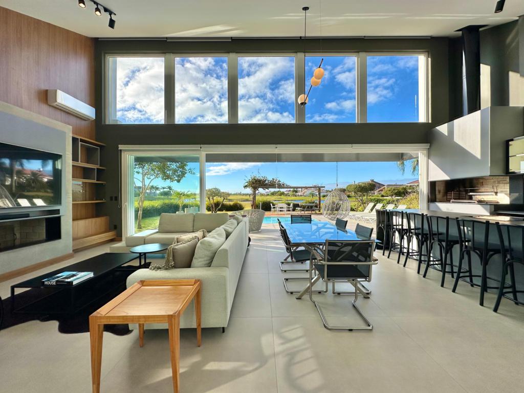 CONDOMÍNIO GREEN VILLAGE, Lote com 900 M², Casa com 230 M², 4 Suítes, Fundos para o Lago, Living 3 ambientes lareira, Lavabo, Espaço Gourmet, Lavanderia, Piscina concreto, Mobiliada e decorada, Garagem para 02 carros, Condomínio Infra completa, Único com campo de golf no litoral, Segurança 24H, Localização Xangri-lá.