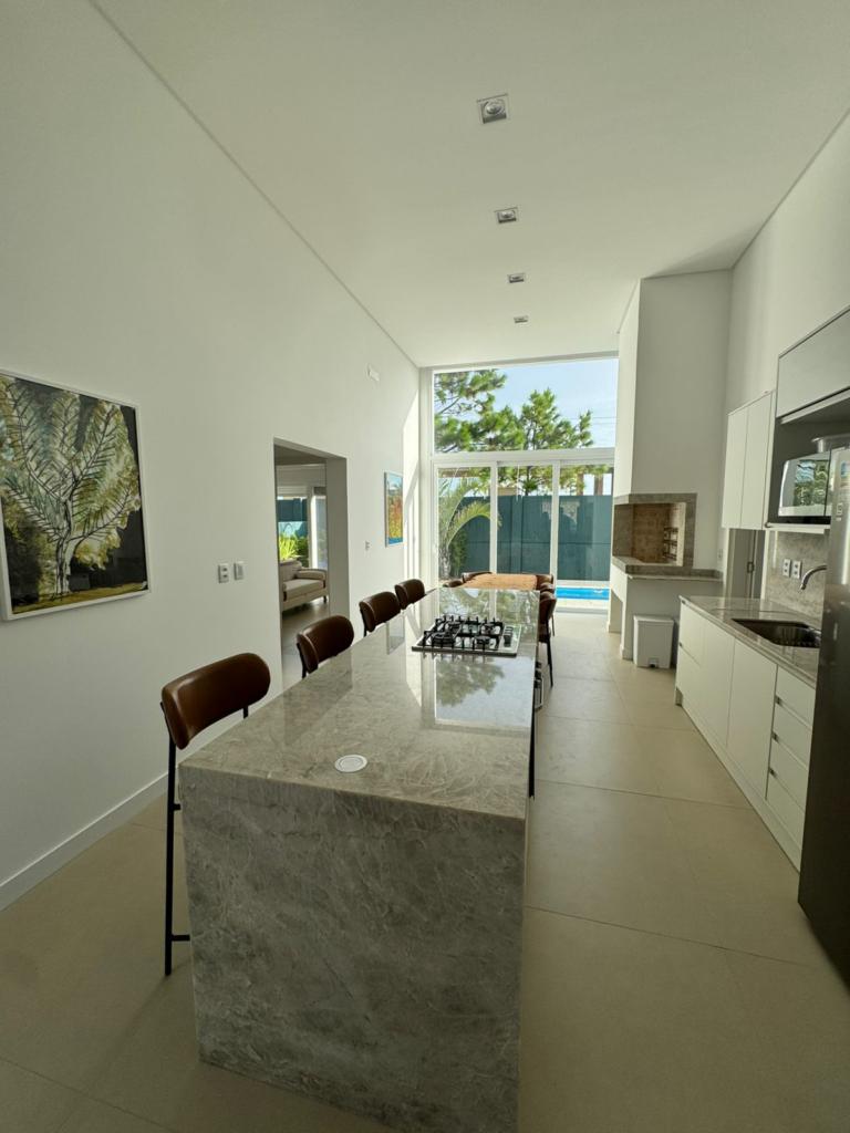 Condomínio Zen - Casa Térrea com 3 suítes, pátio interno, lavabo, piscina, depósito/despensa na cozinha, churrasqueira, lareira, área de serviço. 145m2 + pergolado de 20m2 com possibilidade de cobertura. Semi mobiliada, conforme as fotos.