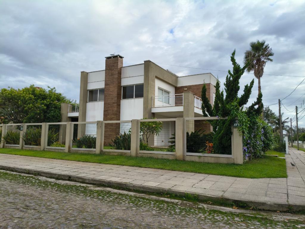 Sobrado mobiliado e decorado, junto ao centro de Atlântida a três quadras do Mar, 4 suites, sala de estar e jantar com lareira, lavabo, cozinha gourmet, varanda com churrasqueira, dependencia de empregada completa.